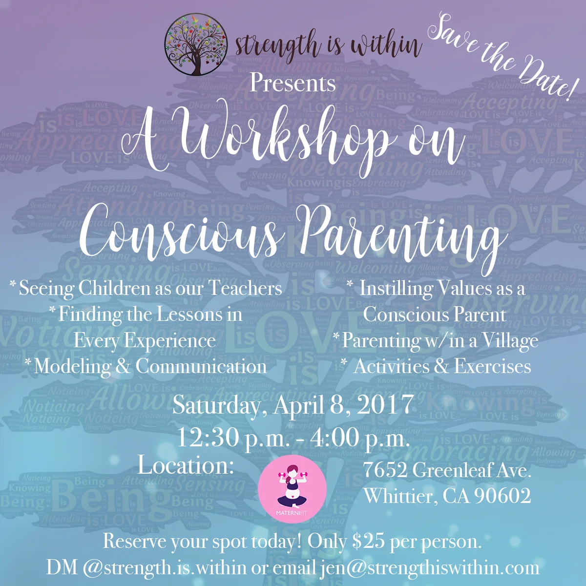Conscious Parenting requires us to be aware of our own behavior, engage our children as individuals, connect with our children by being fully present, and by providing loving discipline and guidance. In this workshop we will discuss the following topics: